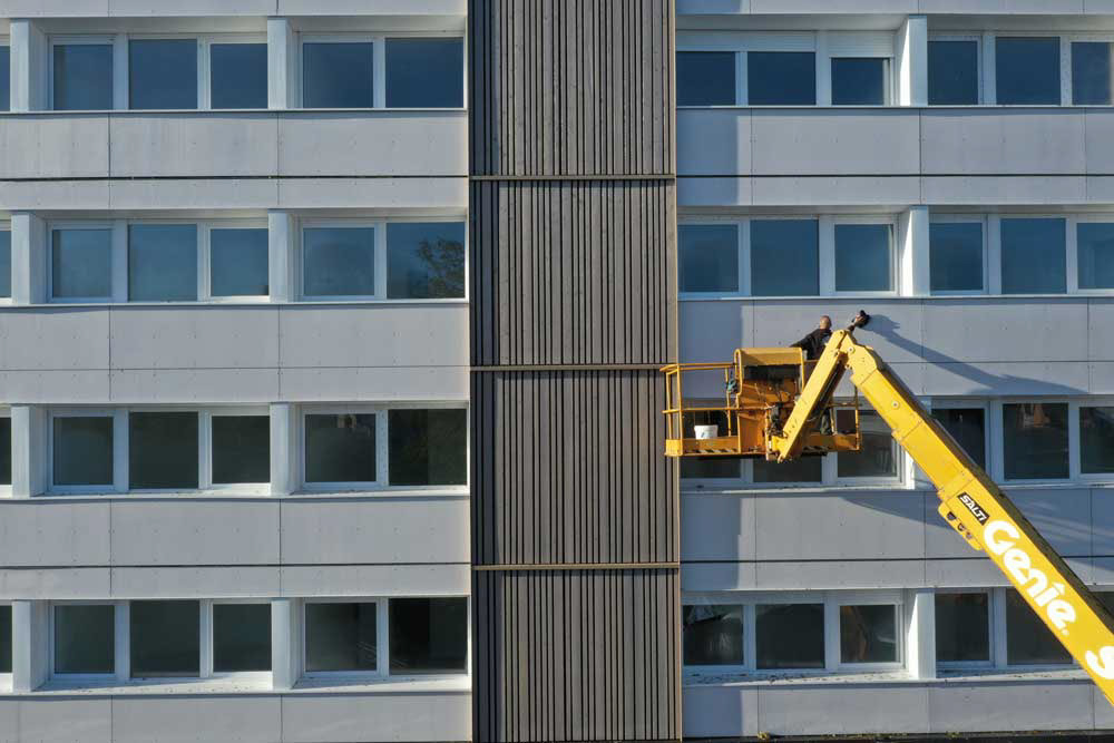 Les deux immeubles résultant de la découpe du bâtiment d’origine accueillent respectivement 40 logements BBC et 30 logements « EnergieSprong ».