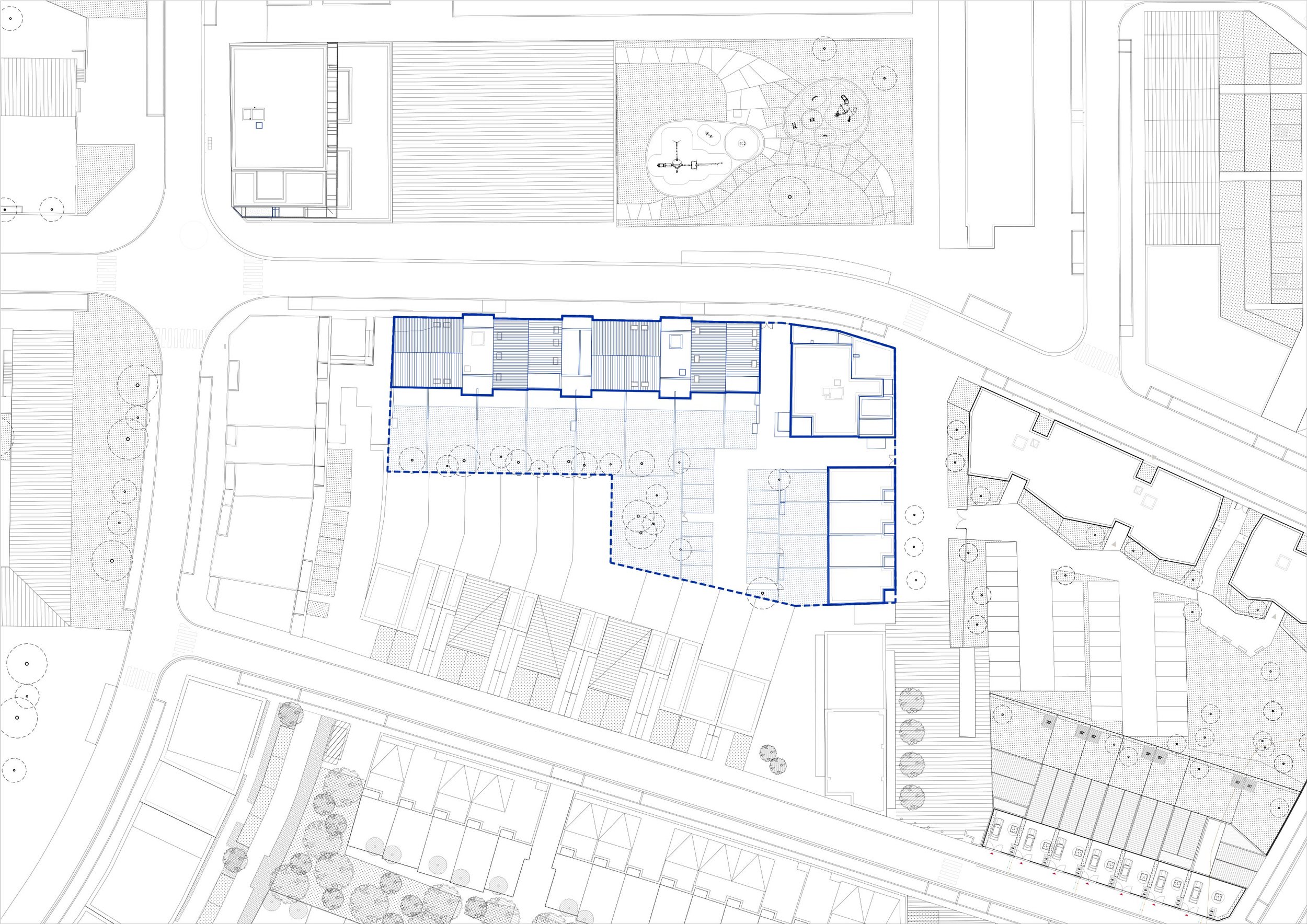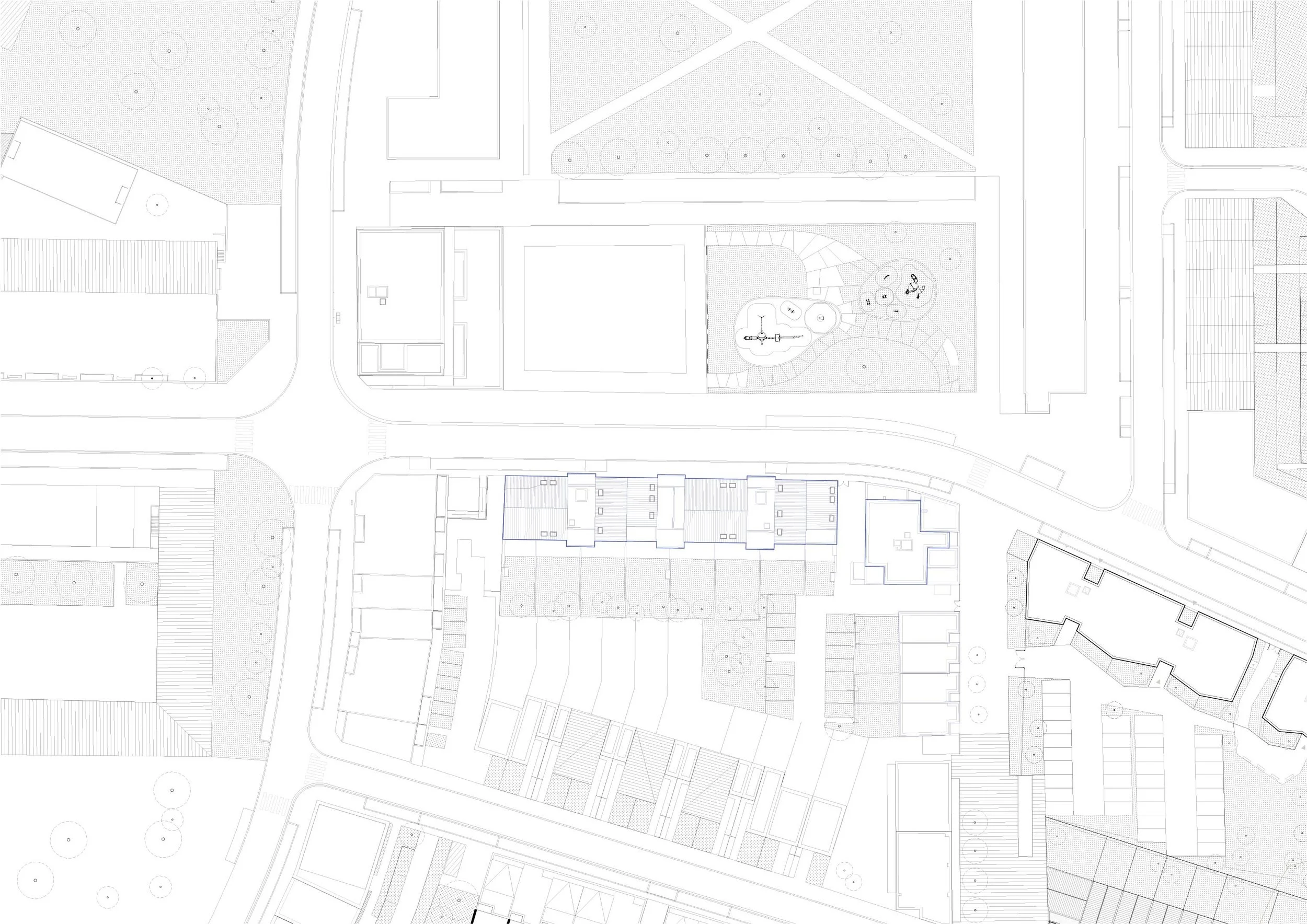 Le stationnement est géré en sous-sol, à l’aplomb des logements intermédiaires et collectifs. Sa compacité permet de végétaliser largement le cœur d’îlot.