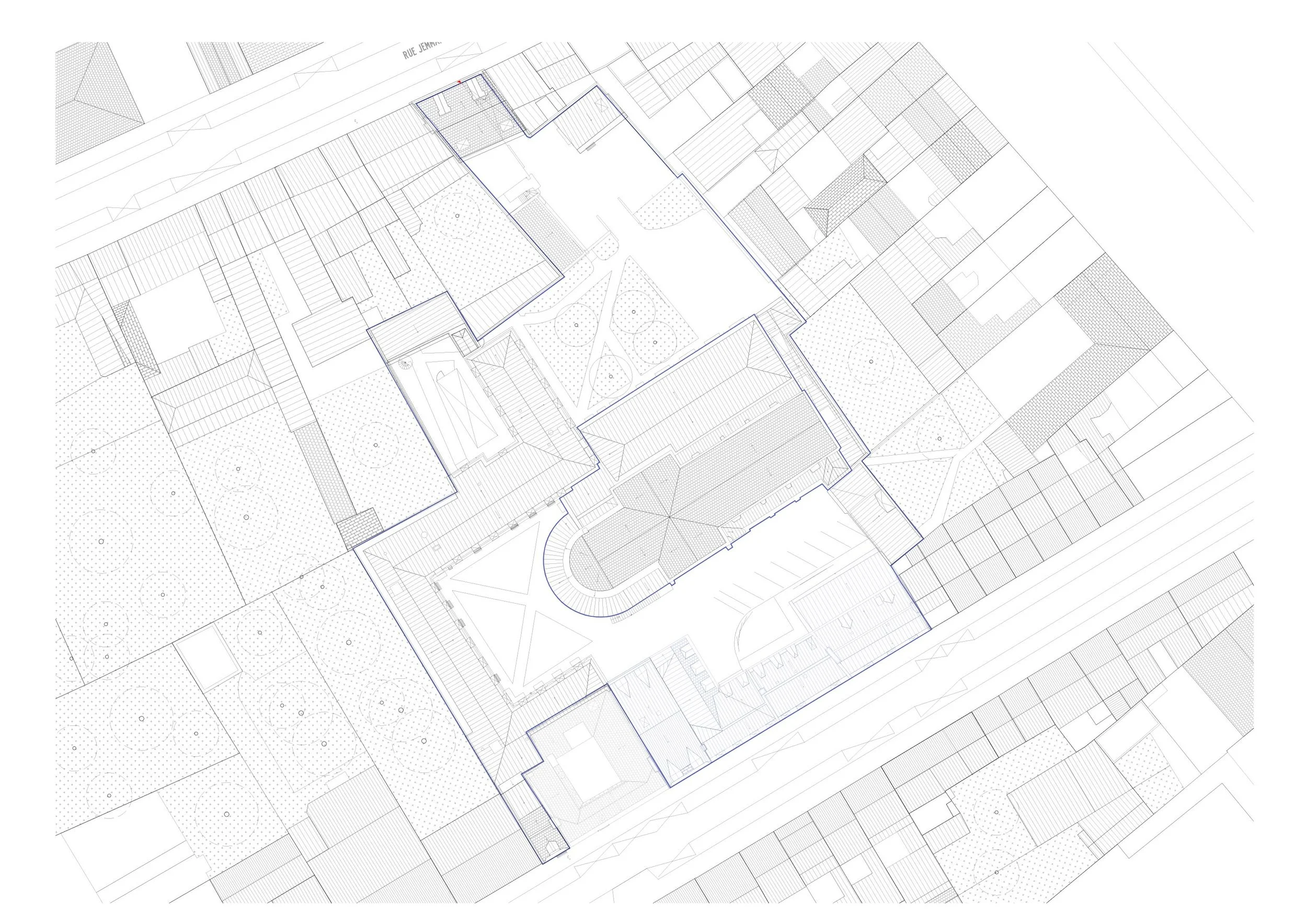 Contexte historique : La résidence du FJT Arouet se trouve dans un ancien couvent situé au cœur du vieux Lille. Les 3750 m² bâtis existant le sont sur un terrain de 4750 m² localisé entre la rue Voltaire et la rue de Jemmapes. L’ilot de ce site traversant est délimité par la rue Royale et la rue de Saint- André.