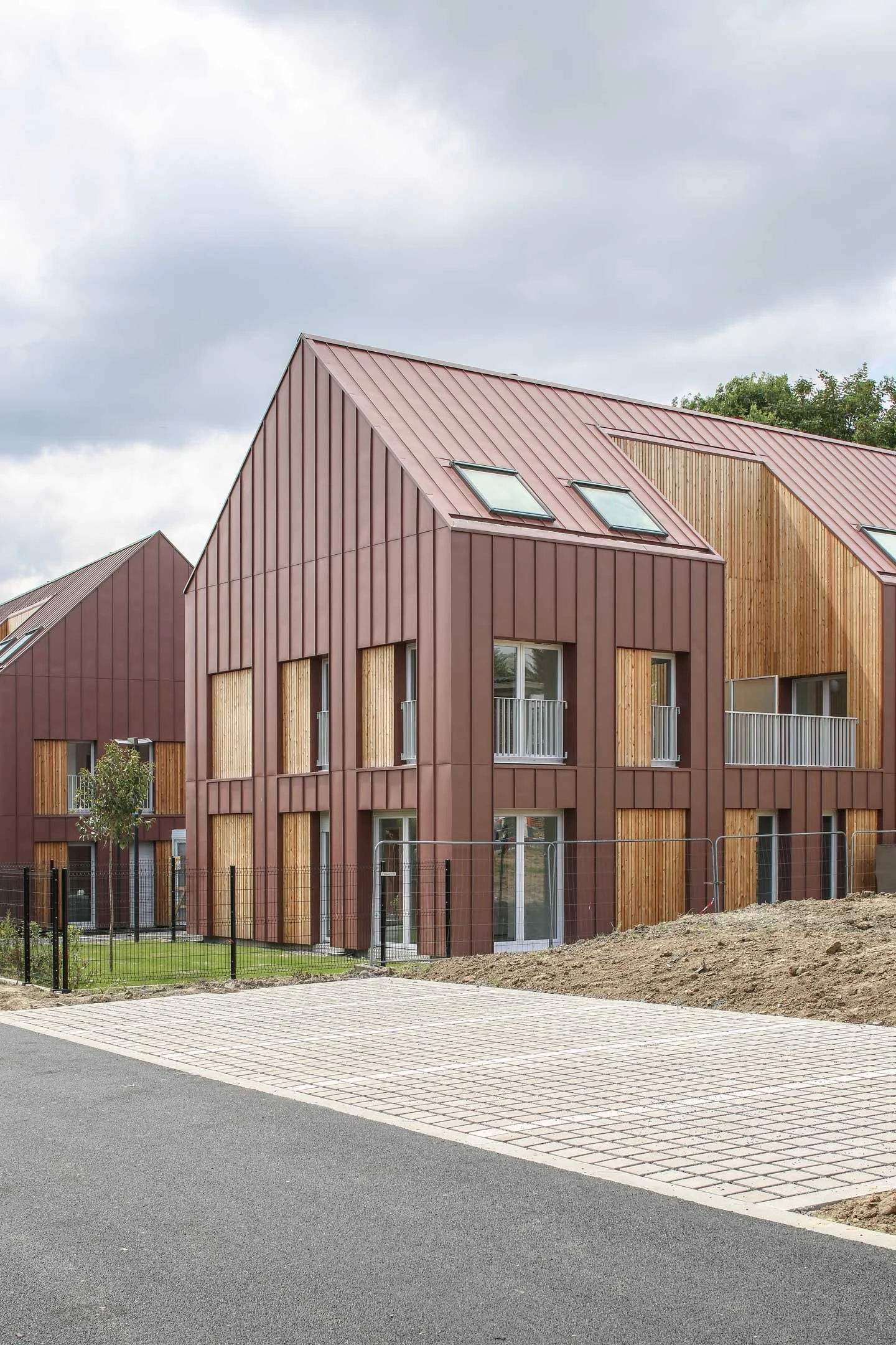 Les maisons présentes dans le quartier sont presque toujours disposées en symétrie, et se distinguent en deux grandes familles : les toits à forte pente (localisés au Nord du quartier), et les toits à faible pente (localisés au Sud du quartier). La majorité des typologies présentent une variante « centrale » lorsque les maisons sont présentées en bandes.